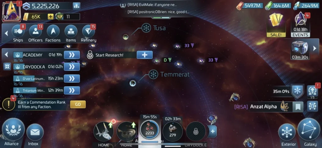 The community in this game is quite active, both inside and outside the game itself. You can find discussions about the game on Reddit or Discord forums. However, the in-game chat is also quite active and always available. Unlike similar games, Star Trek Fleet Commander automatically assigns you to join an alliance early on, making it relatively easy to find like-minded individuals to help you.